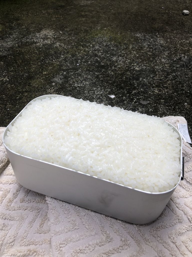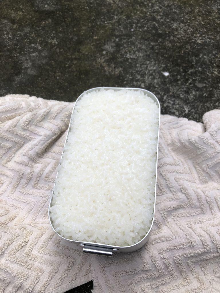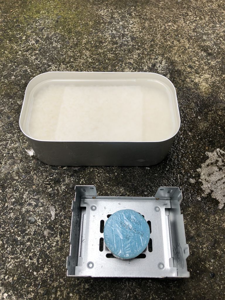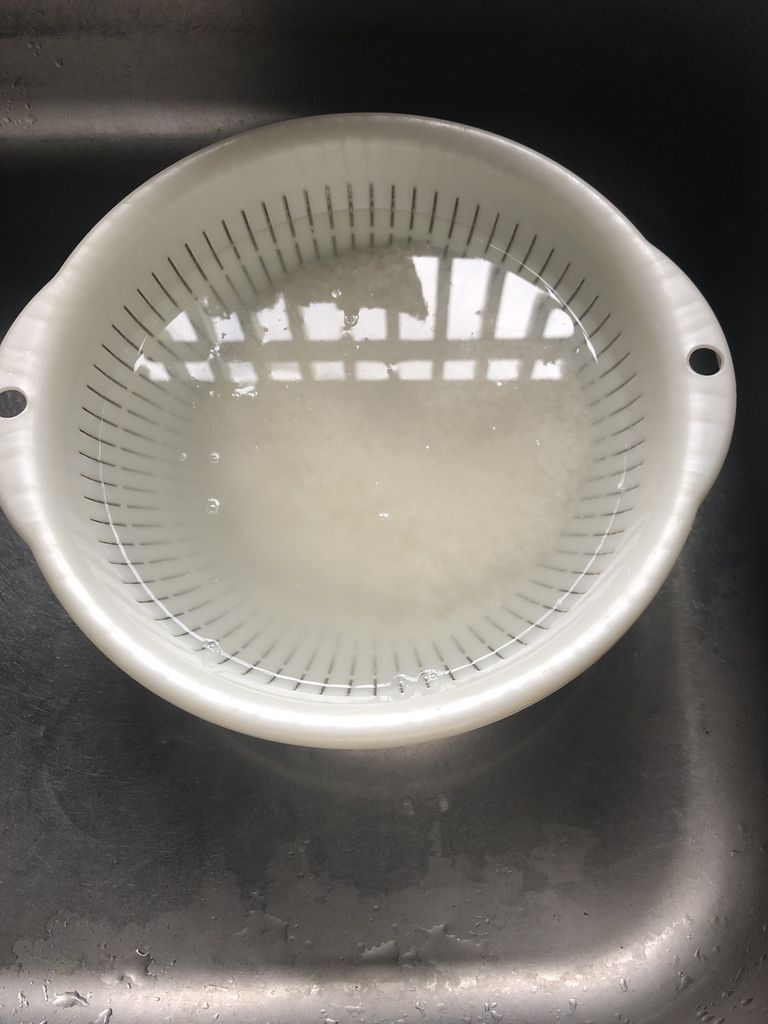 シーズニングしている間に米を水につけておいて吸水しておきます。
